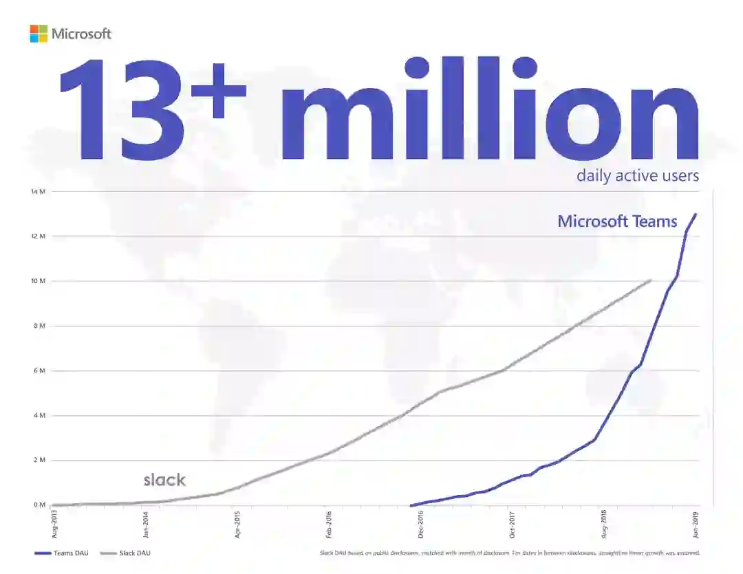 而微软现在有2.5亿人在使用其Teams应用,每日有1300多万活跃用户。