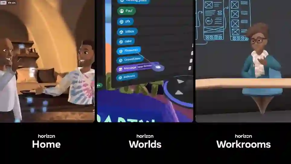 推出了一系列更新,包括Horizon Worlds、Horizon Homes、Horizon Workrooms、Messenger VR和fitness VR,用户可以在这些平台上创建虚拟世界、会议室和自己设计的家庭空间。