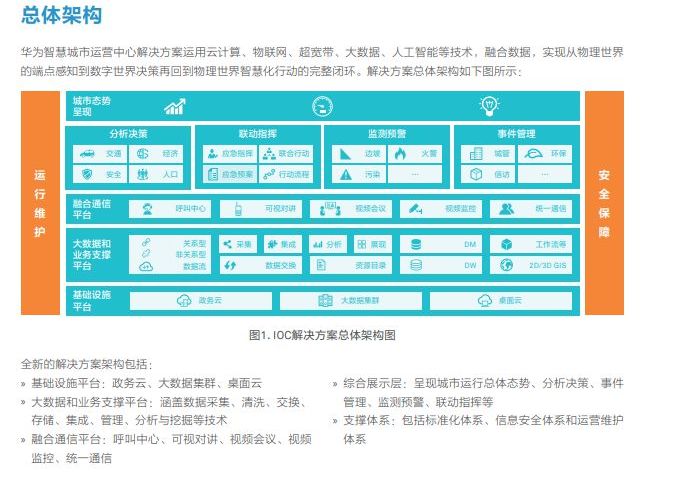 华为智慧城市IOC系统总体框架,来源:华为官网