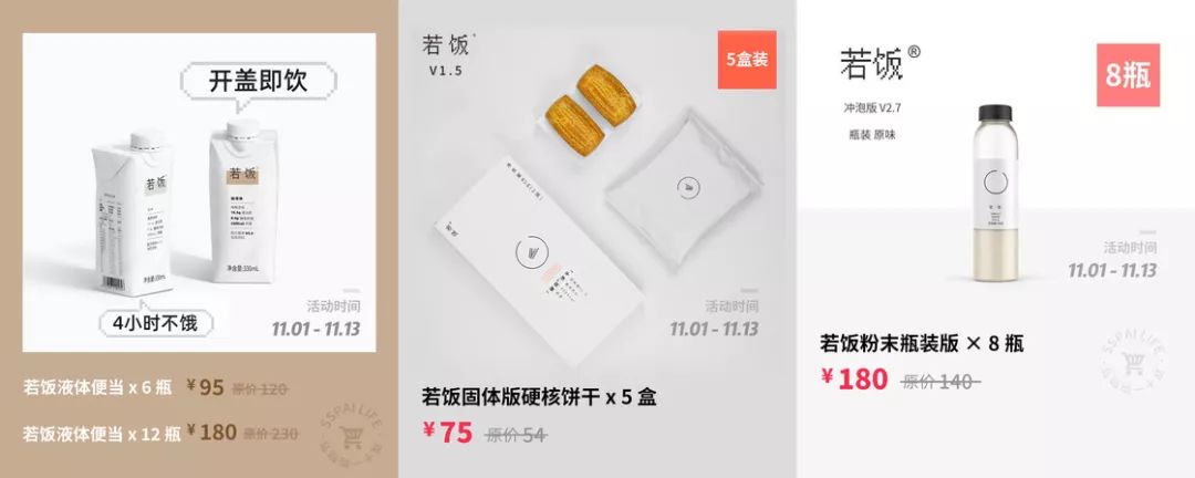 若饭选用燕麦、大豆、亚麻籽油等健康食材。除了碳水化合物、蛋白质、膳食纤维等宏量营养素,若饭还可以补充维生素、铁、锌、钙等微量营养素,一分钟就能九分饱。