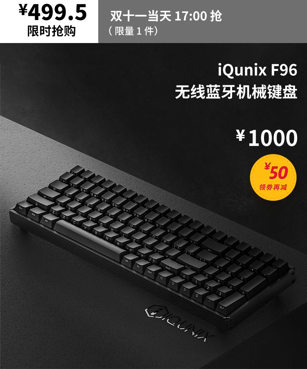 蓝牙/有线双模连接,原厂 Cherry 键轴,同时还有 iQunix 擅长的全铝合金设计。