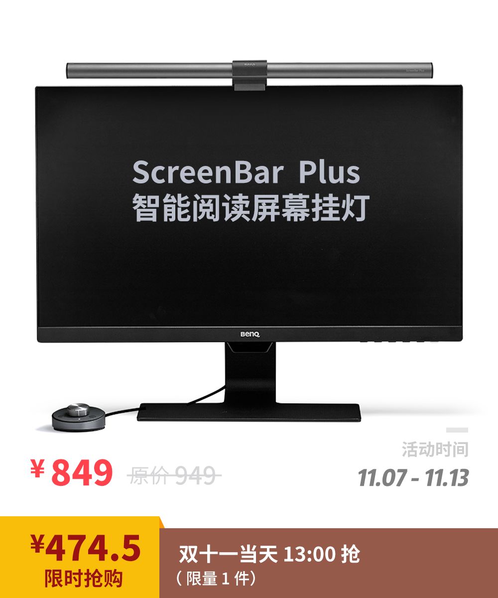 ScreenBar Plus 屏幕挂灯利用屏幕上方的空间固定住灯管,来实现节约桌面空间并且不受屏幕高度和屏幕尺寸限制的照明。