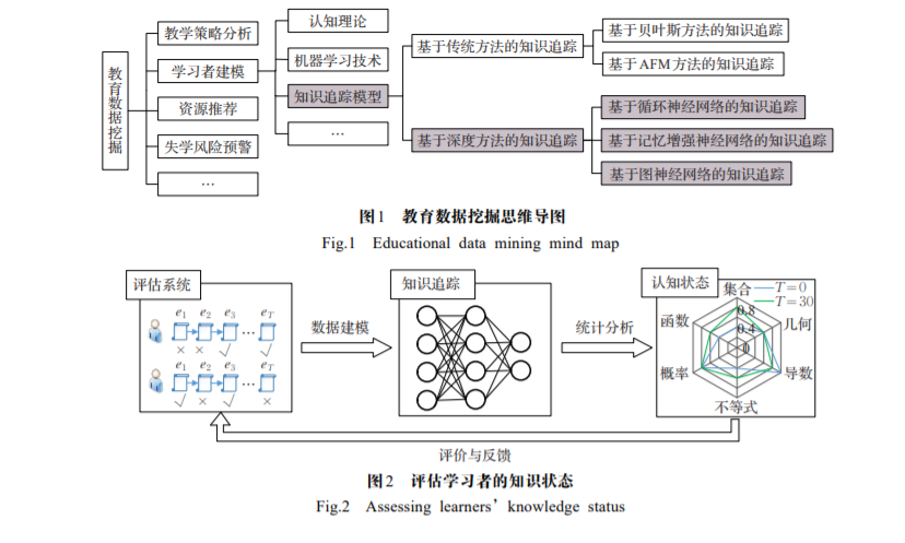 随着教育信息化程度的不断加深,以预测学生知识状态为目标的知识追踪正成为个性化教育中一项重要且富有挑战性的任务。知识追踪作为一项教育数据挖掘的时间序列任务,与深度学习模型强大的特征提取和建模能力相结合,在处理顺序任务时具有得天独厚的优势。为此,简要分析传统知识追踪模型的特点及局限性,以深度知识追踪发展历程为主线,总结基于循环神经网络、记忆增强神经网络、图神经网络的知识追踪模型及其改进模型,并对该领域的已有模型按照方法策略归类整理。同时梳理了可供研究者使用的公开数据集和模型评估指标,比较和分析不同建模方法的特点。对基于深度学习的知识追踪的未来发展方向进行探讨和展望,奠定进一步深入基于深度知识追踪研究的基础。