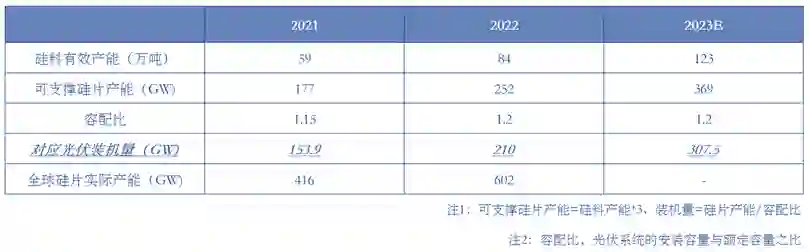 从硅料支撑的光伏装机量数据来看,2022年硅料的有效产能对火热的光伏市场来说仍算不上充裕,其紧缺程度直到2023年才可有效缓解,这意味着2022年硅料价格即使会有所回落,但也绝不会下降太多。
