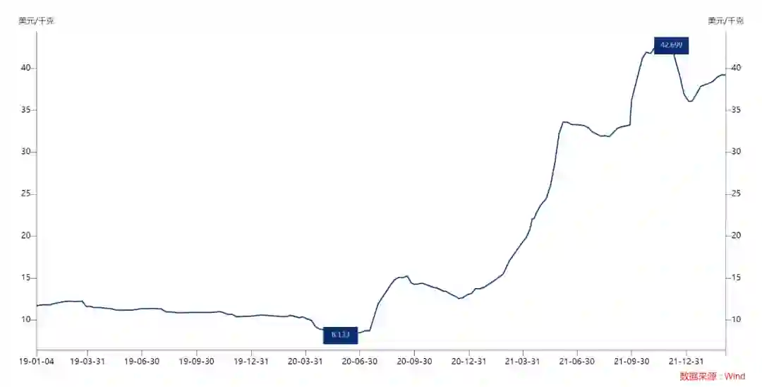 硅料与硅片扩产周期的时间差最终导致产能出现错配,而硅片新势力为了扩大自身在行业的影响力,则不计成本地抢购硅料,最终在供不应求的情况下导致硅料价格暴涨。根据Wind数据,从2020年下半年开始,我国硅料单位现货价一路从5万元/吨飞涨至最高25万元/吨。
