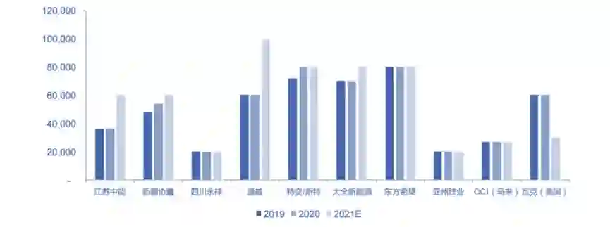 全球主要硅料企业产能(注:江苏中能为保利协鑫子公司)