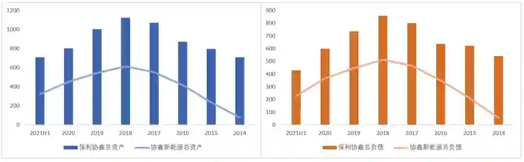 由于协鑫新能源属于保利协鑫的子公司,因此其资产与负债被尽数并入保利协鑫的财务报表。2016年,保利协鑫总资产高达870.19亿元,其中大约一半来自于协鑫新能源。