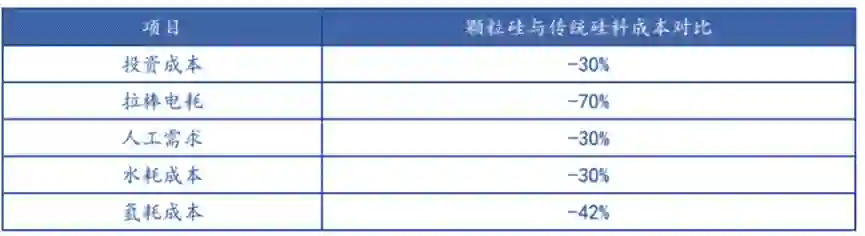 另外,由于颗粒硅本身体积较小,无需破碎,因此也省去了破碎成本。此外,颗粒硅的项目投资成本、人工成本也较棒状硅具有明显优势。