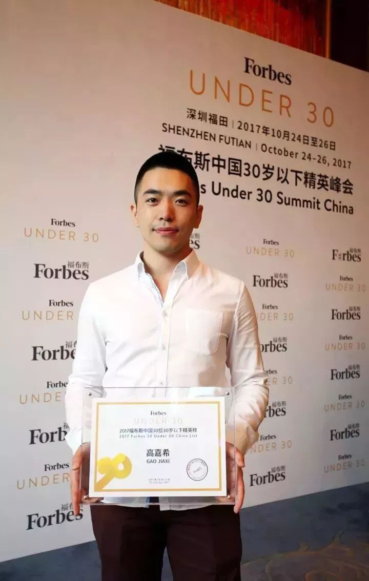 今年8月,福布斯公布了2017年中国“30位30岁以下精英“榜单,28岁的高嘉希入选金融和风险投资领域精英。