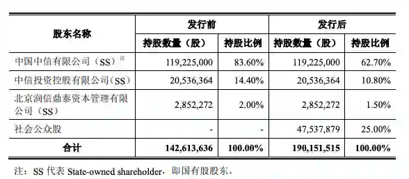 这是一家完全国有的出版公司。根据招股书披露的信息,中国中信集团有限公司通过直接持股和间接持股的方式共持有中信出版98%的股份,系中信出版的实际控制人;北京润信鼎泰资本持有2%的股份。在本次发行后,社会公众股将占中信出版25%的股本。