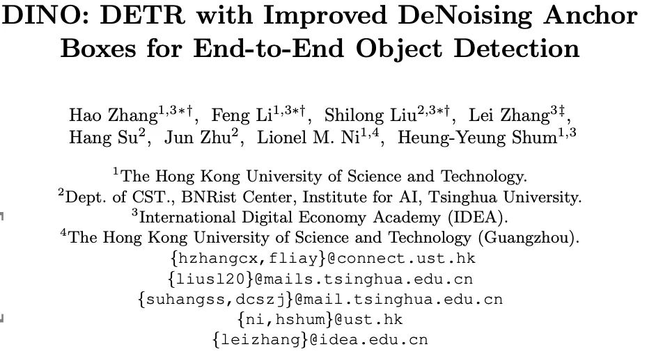 在做DINO之前,我们实验室的几个同学完成了DAB-DETR[2] 和DN-DETR[3] ,DINO也是我们几个同学一起接着这两篇工作的一个延续,沿用了这些设计。
