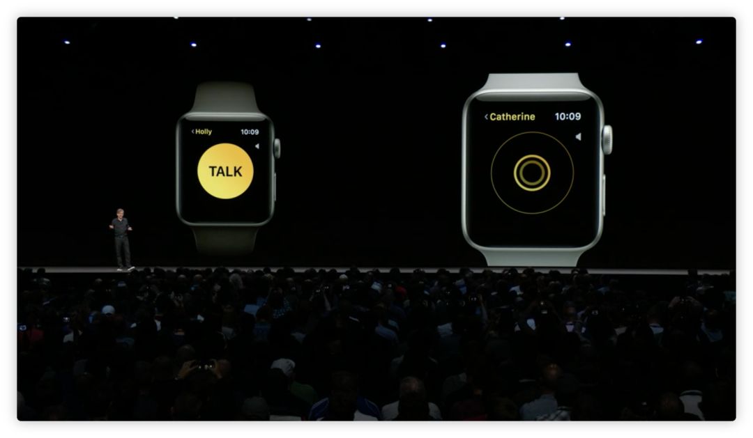 watchOS 5 的另一个较大功能更新是加入了 Walkie-Taikie(对讲机)功能,这项功能必须在网络环境下才能使用,用户可以相互录制小的语音备忘录,如同对讲机一样互发。