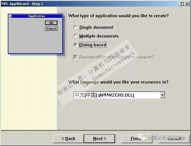 这里,我们选择以对话框为基础进行开发。单击“Finish”按钮会出现最后一个对话框,直接单击“OK”按钮关闭对话框。