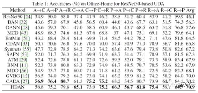 在具体的三个领域适应场景中:无监督领域适应(UDA),半监督领域适应(SSDA)和多源域领域适应(MSDA),HDAN都取得了SOTA的结果。