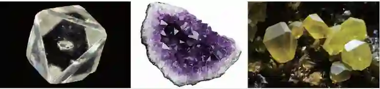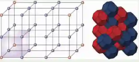大自然中存在许多固体,其中一些固体具有规则、美观的外形,比如见于火山口的金刚石、水晶和硫磺等,它们被称为晶体。晶体具有规则的外形,如果仔细观察,会发现其小面之间成恒定的夹角,与晶体大小无关(图1)。打碎的晶体小块中能看到许多相似的形状,这让人们猜测晶体具有一个最小的几何单元,称为单胞(unit cell),晶体是单胞在三维空间中堆砌而成的,类似纸箱子堆满仓库。平行六面体(特例为正方体),开尔文爵士的截角八面体,都能充满整个空间(图2)。由此而来的一个认识是,晶体具有平移对称性,平移对称性又决定了晶体中允许存在的转动只有n=1,2,3,4,6 次转动这五种可能,这被称为晶体学限制定理。作为数学的表现是,描述晶体转动的矩阵的迹(trace of matrix),必为整数。这个晶体学限制定理,还有个简单证明。考虑到晶体是原子层堆垛而成,故而只需考虑一个平面上的排列方式所允许的转动。平面有两个独立方向,这注定了平行四边形是平面上的单胞。画两组成一定夹角的线簇,可看到是平行四边形的单胞铺满整个平面。任意改变平行四边形的边长比和夹角,可看出这个平面铺排的花样会出现哪些转动对称性。任意的边长比和夹角,没有转动对称性,或者只有n=1 次的转轴;夹角90°,边长不等,对应n=2次的转轴;夹角90°,边长相等,对应n=4 次的转轴;夹角60°,边长相等,对应n=3(6)次的转轴。