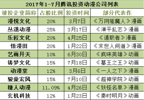 仅腾讯一家,在2017年前7个月就投了10家动漫公司。不仅腾讯、阿里、光线、华谊等巨头纷纷入局,各机构也加快了抢滩速度。出品过《狐妖小红娘》《镇魂街》《十万个冷笑话》等头部国漫的绘梦、艾尔平方等已先后被资本抢驻。