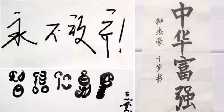 对比一下,右边是十岁小学生的字,是否显得笔锋刚健,线条明丽?