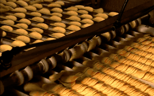 这就要看薯片很有意思的制造过程了,我们最后来看一下普通桶装薯片是如何诞生的。