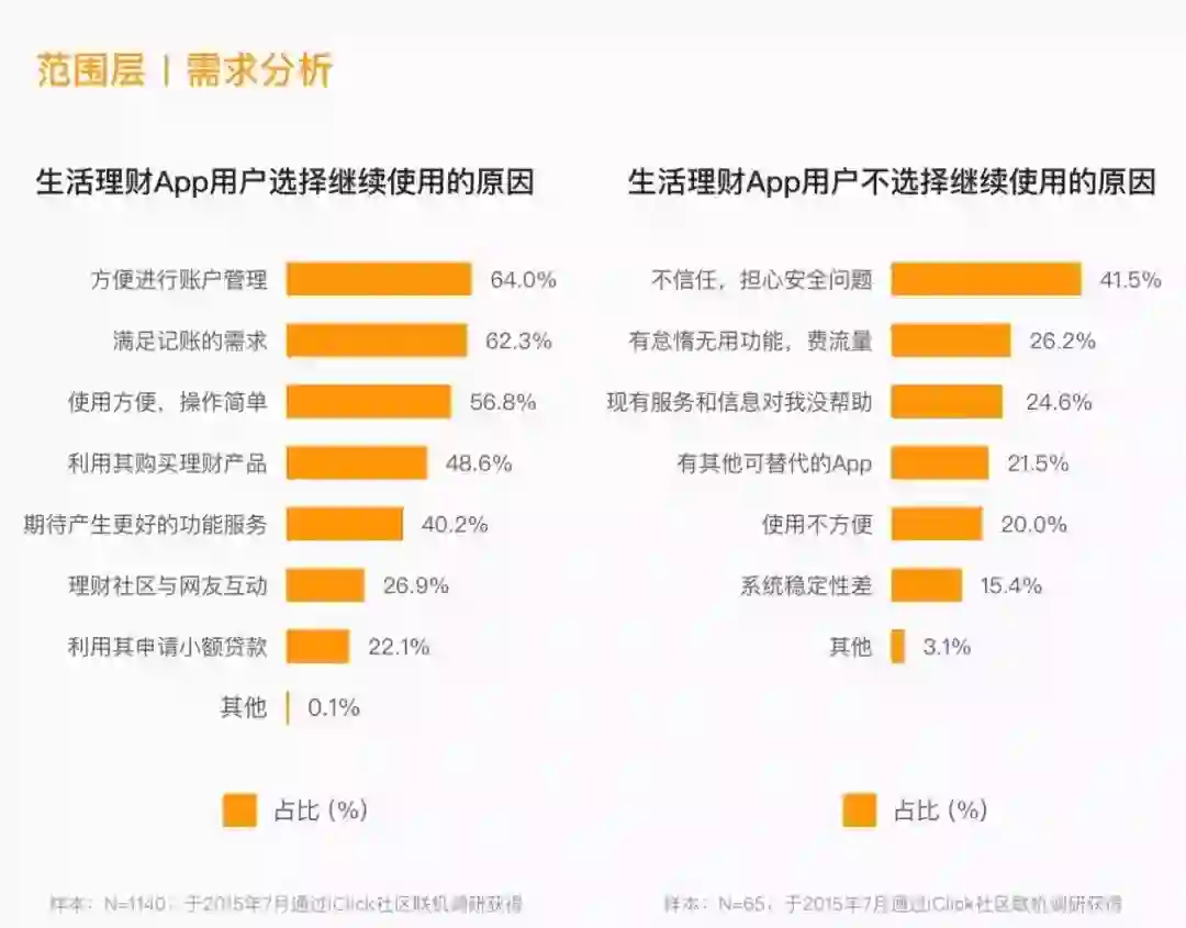 记账功能针对的目标用户群,他们使用记账理财产品,和不使用记账理财产品,都有客观或主观的原因,对这些情况,易观数据曾有过类似的统计和调研。