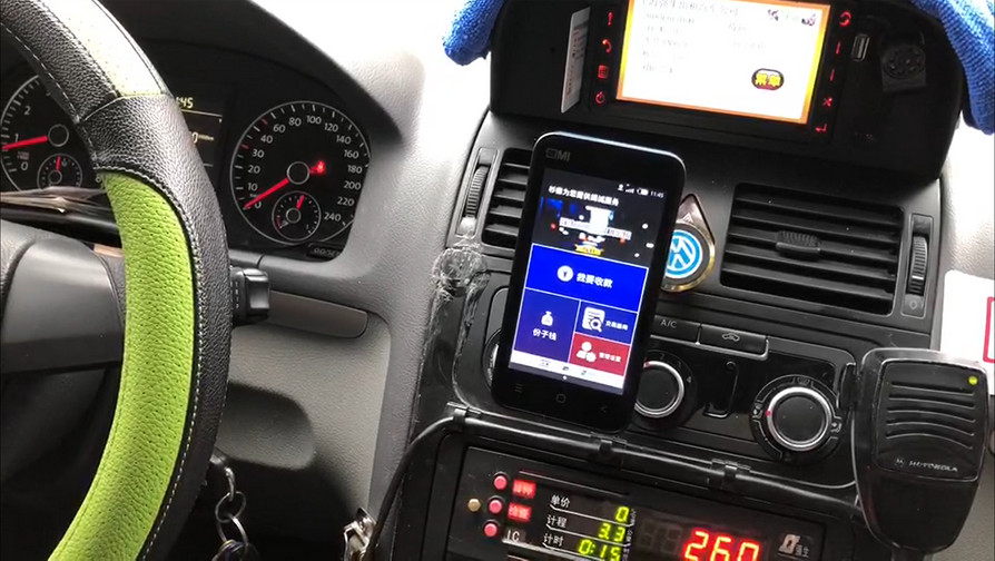 据了解,如要支持Apple Pay支付,强生出租车仪表盘前方都安装了一个类似手机的黑色POS机。