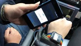 行车结束后,司机师傅在终端上点击“我要收款”,输入相应车费,乘客只需将iPhone或者Apple Watch放在POS机碰一下就可以完成付款。