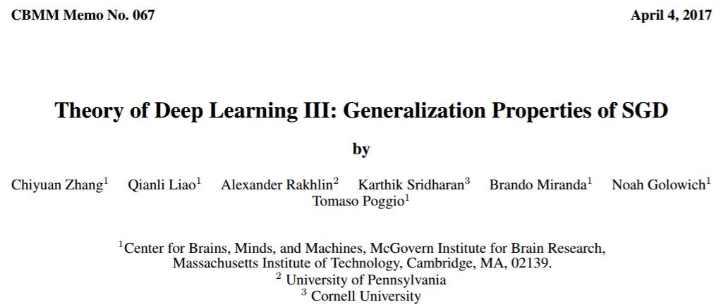 论文三:深度学习理论 3:随机梯度下降的泛化性质(Theory of Deep Learning III: Generalization Properties of SGD)