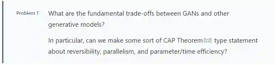 粗略地讲,流模型(Flow Models)先将来自先验的样本进行一系列可逆变换,以便可以精确计算观测值的对数似然。另一方面,自回归模型将观测值的分布分解为条件分布并每次只处理观测值的一部分(对于图像,其每次可能只处理一个像素)。近期的研究表明,这些模型具有不同的性能特征和权衡方法。如何准确地描述这些权衡并确定它们是否为该类模型簇中所固有的,这是一个有趣的开放性问题。