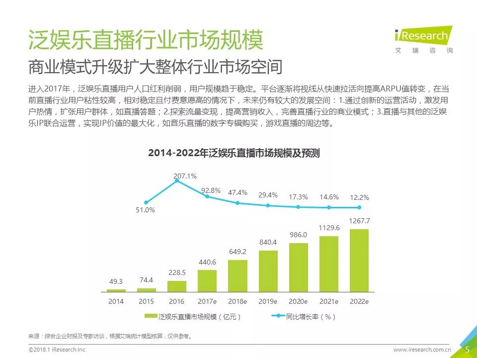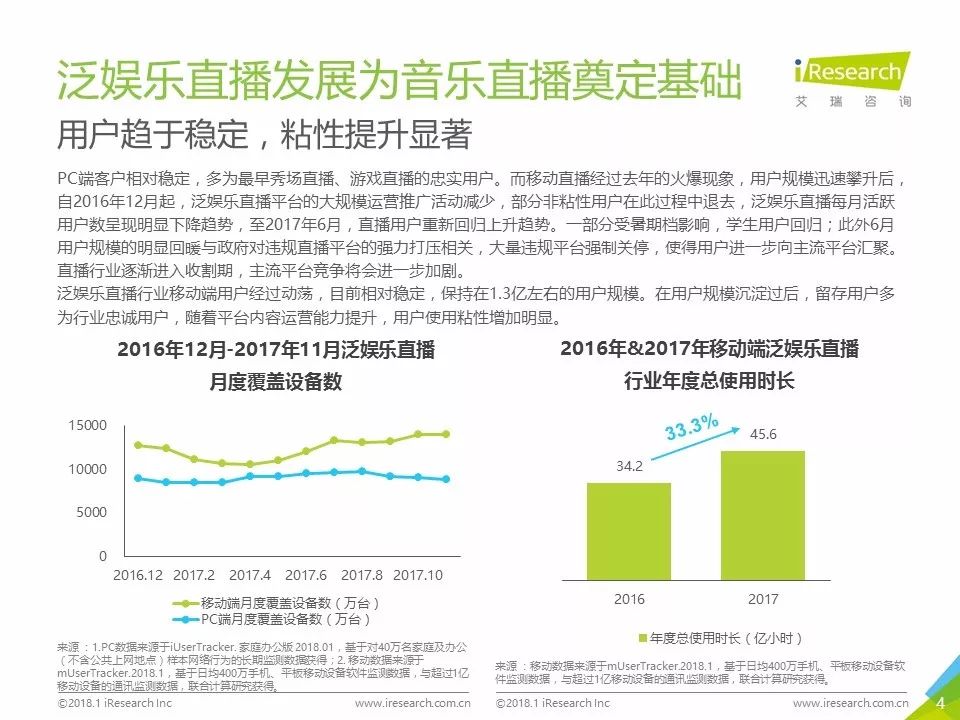 报告背景:泛娱乐直播用户规模相对固定,但用户粘性持续增长;从市场规模看,仍有较大发展空间。