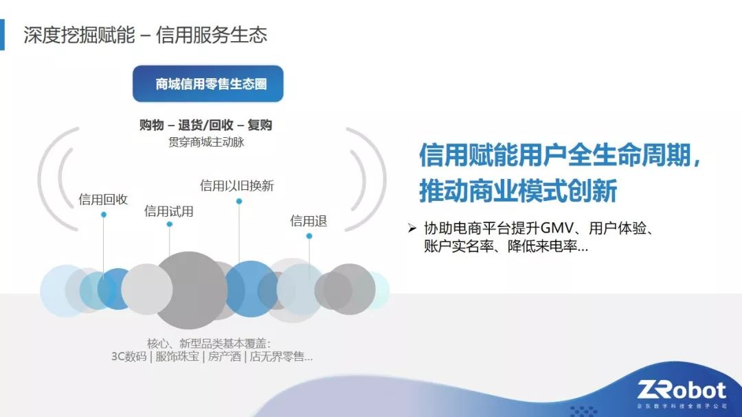 ZRobot是京东数字科技全资子公司,基于海量数据,结合丰富的应用场景,利用数据挖掘和机器学习等专业技术,致力于构建大数据背景下的信用生态体系。