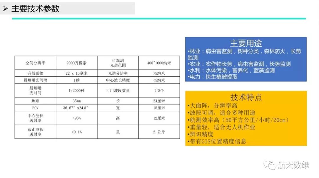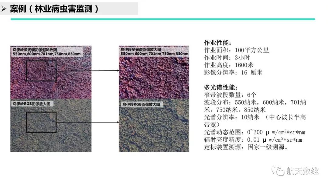 近期,航天数维高新技术股份有限公司生产研发团队在低空遥感监测项目上取得重要进展。研发项目组利用DM-150W无人机,搭载自主研发的窄带多光谱阵列相机,获取某林区高精度多光谱无人机遥感数据。经过严格的光谱定标和波段融合处理流程后,数据处理成果在光谱精度,空间分辨率,与成图定位精度等指标达到国际水平,为该林区森林郁闭度信息提取、树种分类、植被长势及病虫害防治提供了多元化的基础遥感数据。这标志着航天数维在遥感探测技术方面又上了一个新台阶。