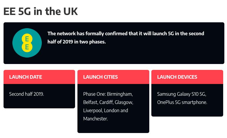 根据 EE 官方发布的 5G 网络进程,今年第二个季度会正式投入,伦敦、爱丁堡、伯明翰和曼彻斯特等部分城市开通 5G 网络,其中支持的手机设备就有一加手机,另一家就是三星了。