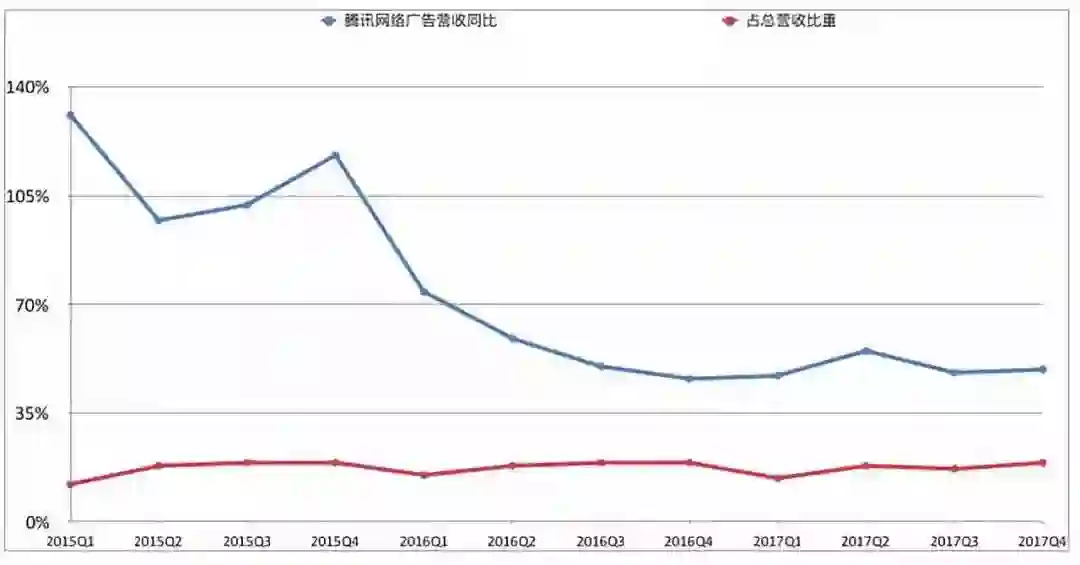 2018年腾讯网络广告业务收入581亿元,同比增长44%;第四季度收入170亿元,同比增长38%。在微信朋友圈、小程序、QQ看点及移动广告联盟的推动下,社交及其他广告收入全年同比增长55%至398亿元,第四季度同比增长44%至118亿元。(网络广告业务收入)