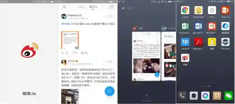 在桌面上点击刚生成的这个图标,会有独立的开屏页面——微博 lite,浏览页无论怎么上下滑动都没有了浏览器的地址栏,多任务切换也有单独的后台标签页。