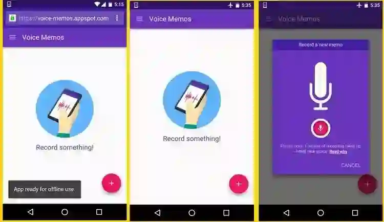 在开发者文档示例中,利用这项离线能力,语音备忘录不需要网络也能记录声音了。