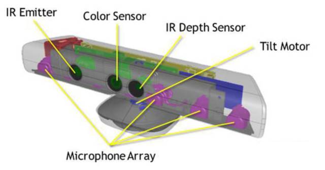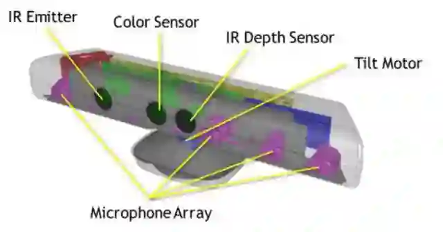 就结构来看毫不意外,除了距离、环境光传感器和扬声器麦克风这些手机都会配备的东西,剩下的几个元件基本上和Kinect一代没有区别。