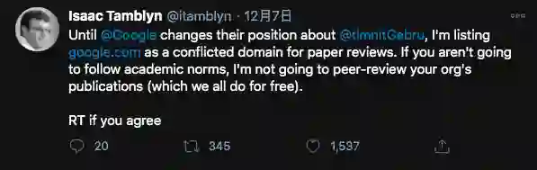 而后,有学者在Twitter上表示,若谷歌不作出改变,他将不再免费帮谷歌审核论文。