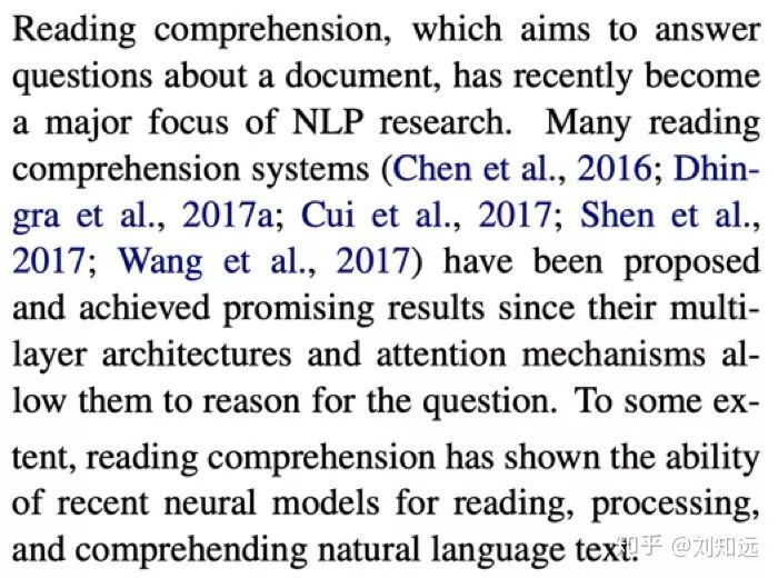介绍本文的研究任务及其在该研究领域的重要价值和意义。如果是领域公认的重要任务的话,则可以不用详细论述其研究价值/意义;如果是新提出的研究任务,则需要花费比较多篇幅论证该任务的价值。如下所示论文 [2] 的第 1 段集中说明阅读理解研究任务。