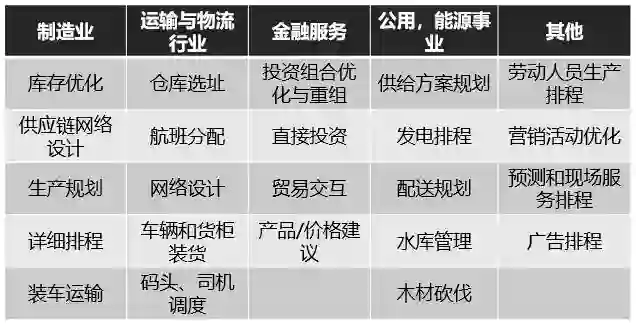 输出应用:通过对问题的求解,根据实际问题的形式,我们将获得一个经过优化的计划或排程。现在解释性分析已经应用在如制造、运输、物流、金融服务、政府公用事业等各个领域。