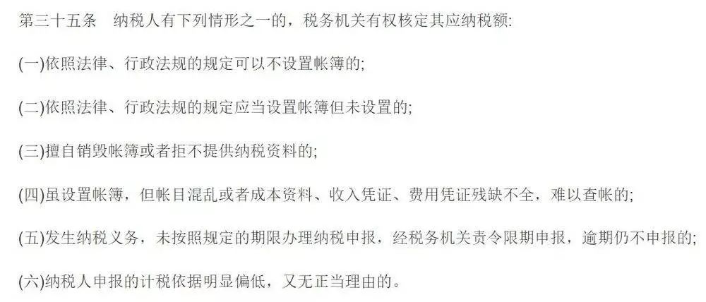 “核定征收不是不能用,是不能滥用。”刘云刚表示,《税收征管法》规定了核定征收的六种情形,《个人所得税法实施条例》也规定了核定征收的条件。其中《税收征管法》规定的六种情形,除第一种情形外,实质都是“事后”核定,即税务机关在程序上必须经过调查取证,认定纳税人符合核定征收条件,才能确定采用核定征收。