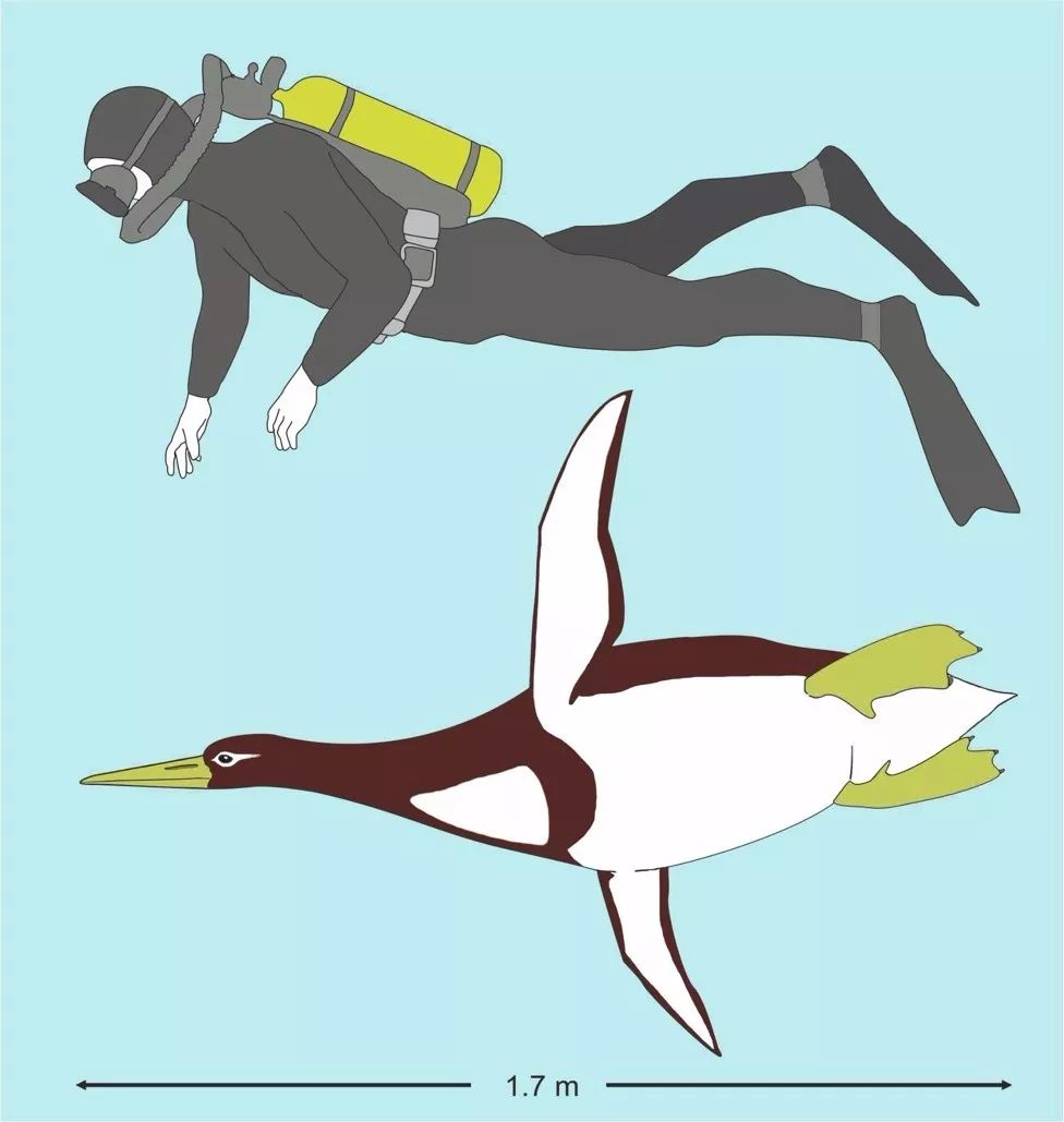 现存的体型最高的企鹅是帝企鹅,成年帝企鹅的身高大约1.2米,和四五岁的小朋友差不多高。最近,科学家鉴定出了一种已灭绝的古代巨型企鹅,名为比氏库米企鹅(Kumimanue biceae)。根据化石分析,研究者推算出比氏库米企鹅的身高和体重和成年人类类似,它们的身高大约1.7米,体重约为100公斤。 比氏库米企鹅也是人类已知的最古老的企鹅种类之一。目前,发现的化石大约有5500万到6000万年的历史,它们活跃在恐龙灭绝后的古新世后期。