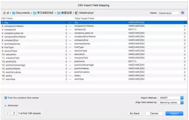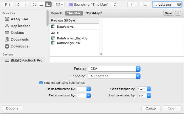 给表取个名字,载入后,就将CSV成功导入到数据库了,能够进行数据查询的操作。