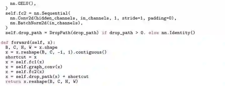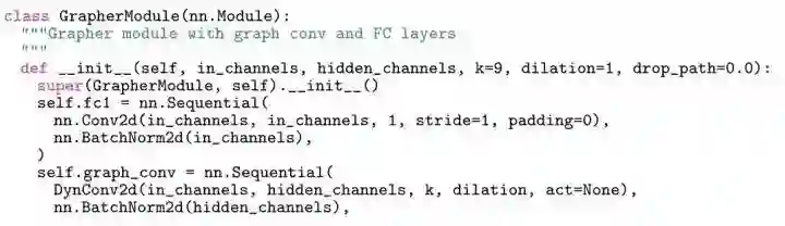 GCN 部分使用了https://github.com/lightaime/deep_gcns_torch中的 DynConv2d(in_channels, hidden_channels, k, dilation, act=None),激活函数 使用的是 nn.GeLU()。