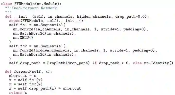 上式5中的 里面的 和 分别对应伪代码中的 self.fc1 和 self.fc2,二者都是由 nn.Conv2d(kernel=1) 进行实现,并在后面加上 nn.BatchNorm2d。