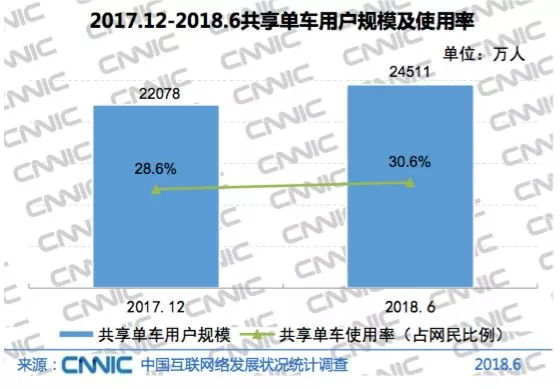 2018年上半年,网民中分别有30.6%、43.2%和37.3%使用过共享单车、预约出租车、预约专车/快车,用户规模较2017年末分别增长了11.0%、20.8%和26.5%。共享单车市场由2017年末的二强争霸重回多强竞争格局,单车企业尝试通过多种方式拓展营收来源,并开始提供免押金服务以规避风险。