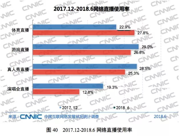 我国网络直播用户规模达到4.25亿,较2017年末微增294万,用户使用率为 53.0%,较 2017 年末下降 1.7 个百分点。
