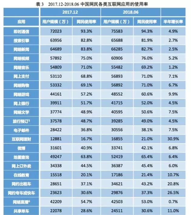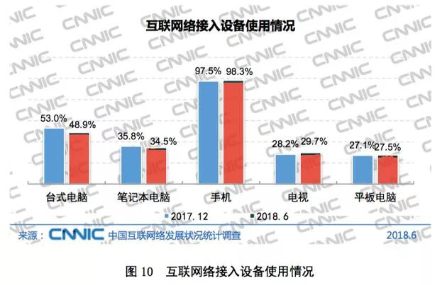 根据报告,截至2018年6月30日,我国网民规模达8.02亿,普及率为57.7%;手机网民规模达7.88亿,网民中使用手机上网人群的占比达 98.3%。