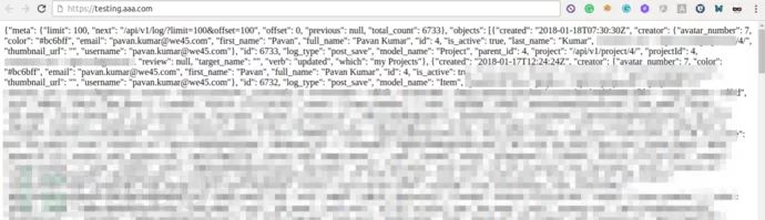 由于该站点共享来自任何站点的信息,因此让我们进一步的使用我们自己的域来利用它。我们创建了名为https://testing.aaa.com的域,并将其嵌入漏洞利用代码,以便从易受攻击的应用程序中窃取机密信息。当受害者在浏览器中打开https://testing.aaa.com时,它会检索敏感信息并发送给攻击者的服务器。以下是我们可以收集到的信息,如下图所示。