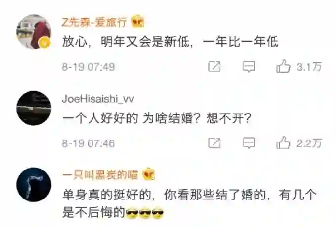 但这跟网络上的舆论风向却极其违和,很多评论里清一色都是不婚主义……