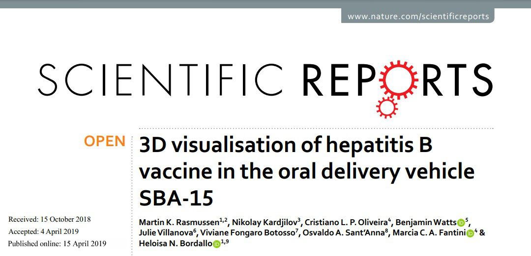 近日,来自圣保罗大学和Butantan研究所的研究人员与Niels Bohr研究所的科学家联合,向制药界引入了一种技术,该技术可以帮助制定最佳的口服乙型肝炎疫苗。相关文章以“3D visualisation of hepatitis B vaccine in the oral delivery vehicle SBA-15”为题在线代表在《Scientific Reports》杂志上。