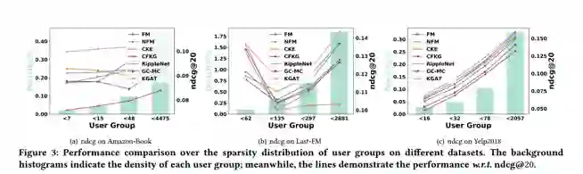 在不同sparsity设定下,KGAT均好于当前所有模型